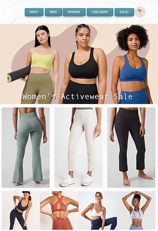 RYOGA is an athleisure store I created for my media design class. I used the Adobe suite to create the HTML code and graphics for each product. It is fully functional with hover product images, checkout cart, banner ads, and GIFs.